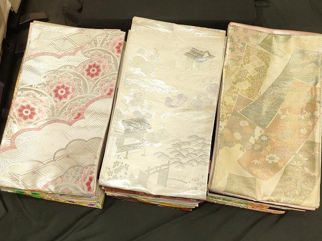 Heiwaya Main Shop ■ Nishijin Fukuro Obi (Sashes) - 100 pieces in total. Featuring phoenixes, cranes, mandarin ducks, landscapes, floral designs, hosohana (flower motifs), Saga Nishiki (brocade), gold and silver threads, and more. Many in good condition, some unused. All pure silk. hi2808