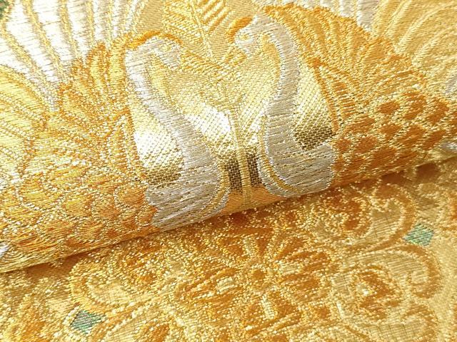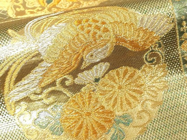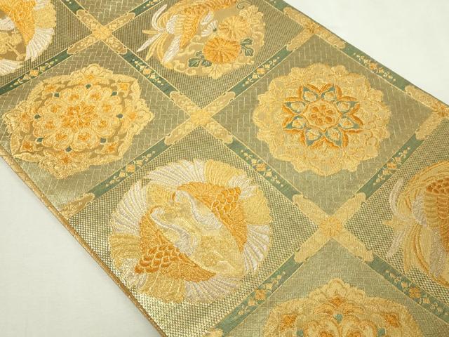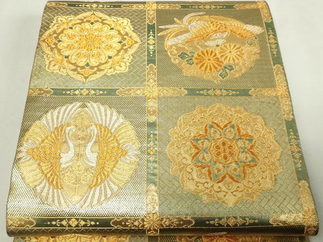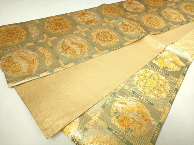 Heiwaya Main Store ▼ Saga Nishiki Six-Panel Patterned Obi (Sash) with Shosoin Flying Crane and Flower Design, Genuine Gold Leaf, Pure Silk, Exquisite Item DABE9373sf