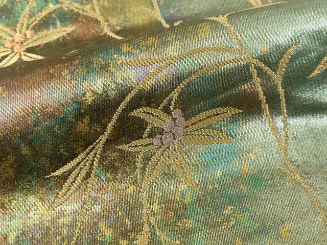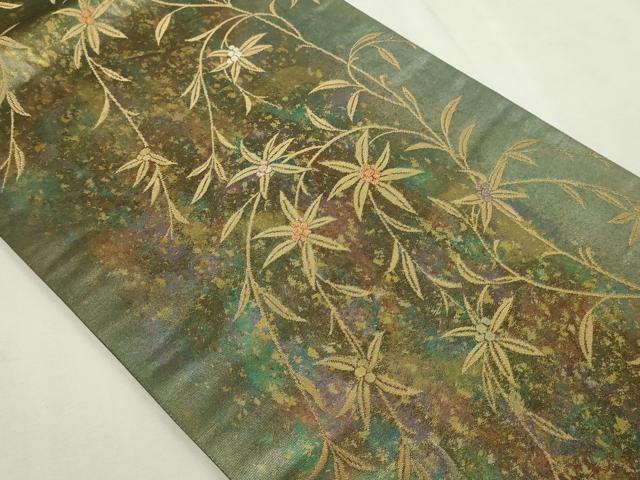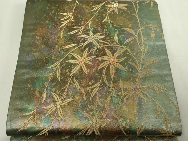 Heiwaya Main Store ▼ Six-panel patterned obi sash, branch and flower design, Imperial gold lacquer foil, pure silk, exquisite item, DABE9388sf