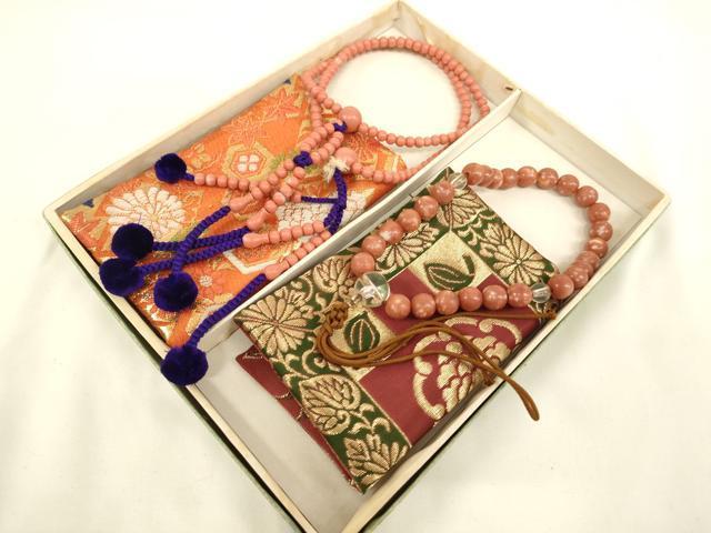 Heiwaya Main Store ▼ Couple's Prayer Beads Set (4 pieces) - Rosary and Prayer Bead Case - Gold Brocade - Box Included - Buddhist Robes - Temple - Buddhist Equipment - Buddhism - Monk - Shinto Priest - Attire - AABH2770ja