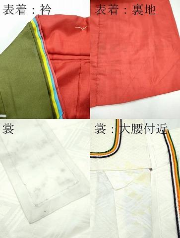 表着の状態は接写画像のように、衿・裏地所々に薄い汚れがございますが