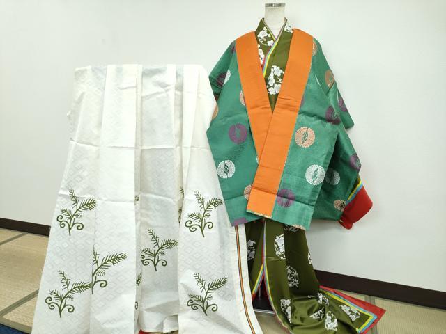 Heiwaya Honten: Exquisite Junihitoe Set (Tankoro, Outer Kimono, and Skirt) - Perfect for Weddings, Ceremonies, and Shrine Ceremonies - Karaori Weave with a Dancing Butterfly and Round Design - Excellent Item, CZAA5249s6