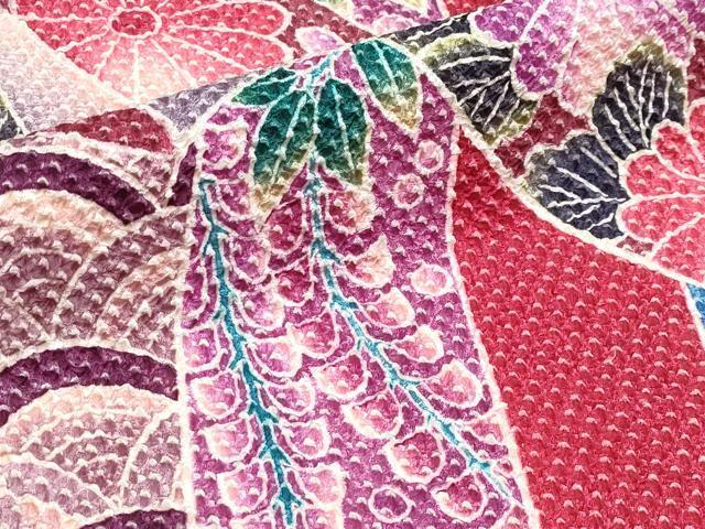 高度な技術を要する複雑な絞りに「藤娘五色」を基とする