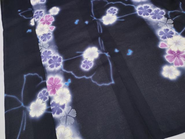 Heiwaya Kimono ∴ World-renowned fashion designer Kansai Yamamoto brand summer yukata, butterfly and flower pattern, black background, gold embellishments, cotton, exquisite item, unused, CABE8834ng