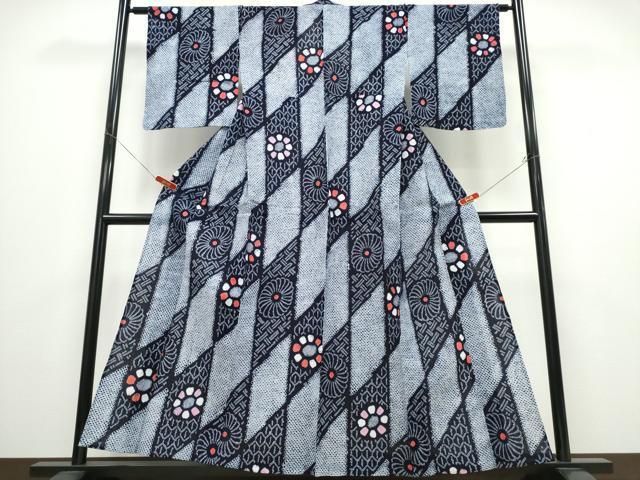 Heiwaya Kimono ∴ Summer Yukata, Arimatsu Narumi Shibori, Auspicious Chrysanthemum Pattern, Cotton, Excellent Quality, Unused, CABD2623ng