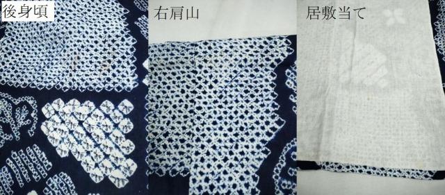 状態は接写画像のように後身頃・右肩山・居敷当てに薄い汚れがございますが