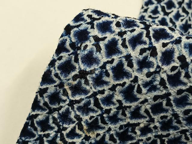 状態は接写画像のように表地所々・衿・両袖・居敷当て・肩当てに薄い汚れ、後身頃にヤケがございます。