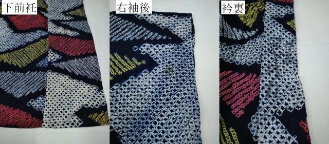 状態は接写画像のように下前衽にヤケ、右袖後・衿裏に薄い汚れがございますが