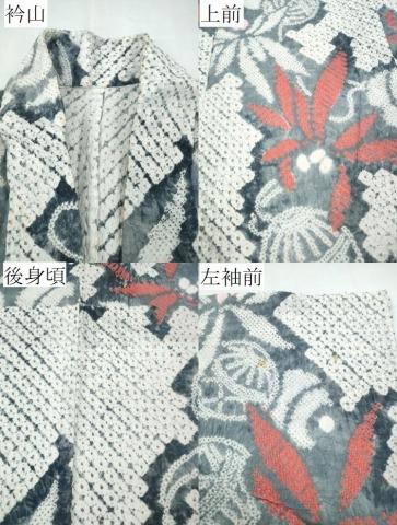 状態は接写画像のように衿山・上前・後身頃・左袖前に薄い汚れがございますが