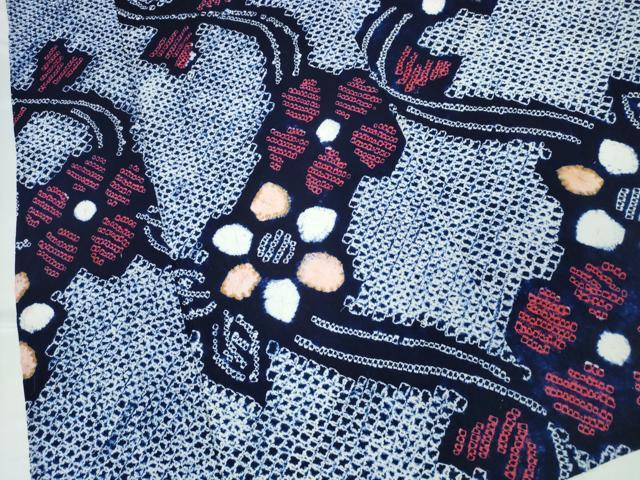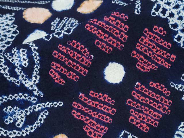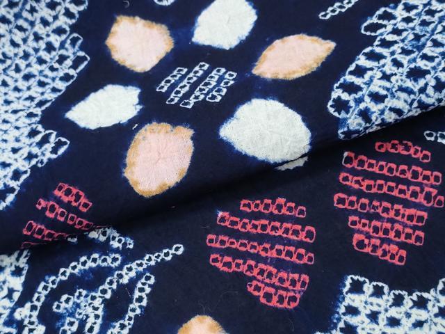 状態は接写画像のように柄部分に有松絞り特有シミがございますが