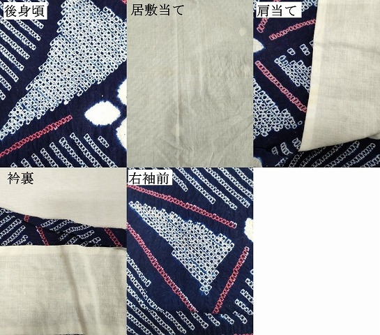 状態は接写画像のように後身頃・居敷当て・肩当て・衿裏・右袖前に薄い汚れがございますが