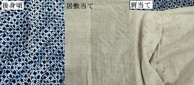 状態は接写画像のように後身頃・居敷当て・肩当てに薄い汚れがございますが