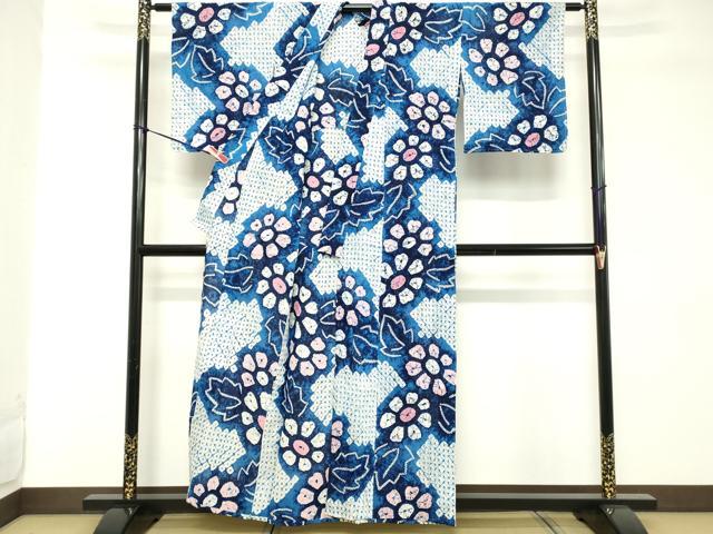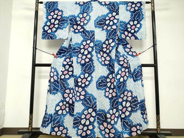Heiwaya Kimono∴Summer Yukata, Arimatsu Narumi Shibori, Floral Pattern, Cotton, Excellent Quality, Unused, DABD2870cd