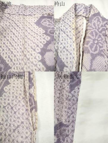 表地所々に薄いシミ・ヤケ、衿山・袖口内側に汚れ、居敷当てに糸解けがございます。