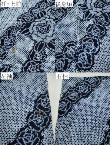 状態は接写画像のように衽・上前・後身頃・両袖に薄いシミがございますが