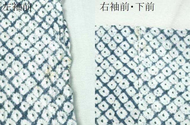状態は接写画像のように左袖前・右袖前・下前に薄い汚れがございますが