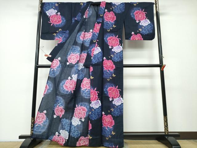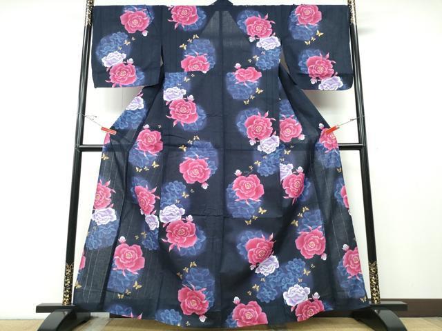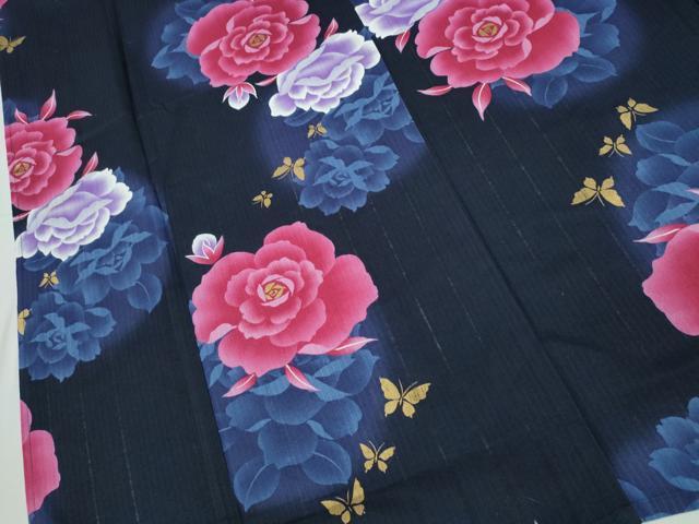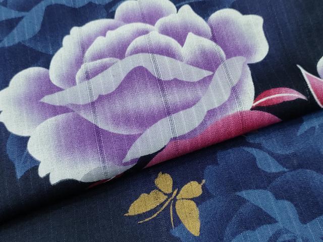 Heiwaya Kimono ∴ Summer Yukata, Dancing Butterfly and Peony, Gold Leaf, Cotton, Exquisite Item, CABD2661ng