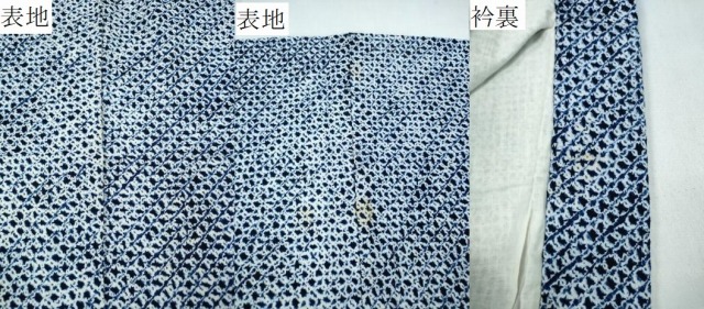 表地所々に薄いシミ・ヤケ、衿裏に薄いシミがございます。