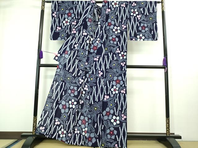 Heiwaya Kimono∴Superb Summer Yukata, Arimatsu Narumi Shibori, Floral Pattern, Cotton, Exquisite Item, DZAA20227kh5