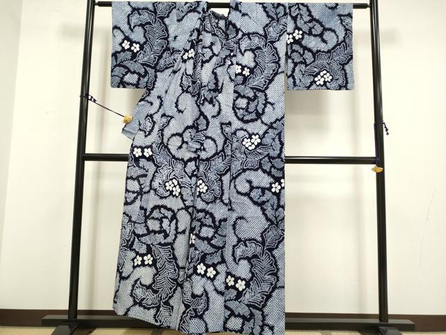 Heiwaya Kimono∴Superb Summer Yukata, Arimatsu Narumi Shibori, Floral Pattern, Cotton, Exquisite Item, DZAA20264kh5