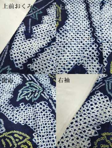 状態は接写画像のように上前おくみ・上前・裏面・右袖前に薄い汚れがございますが