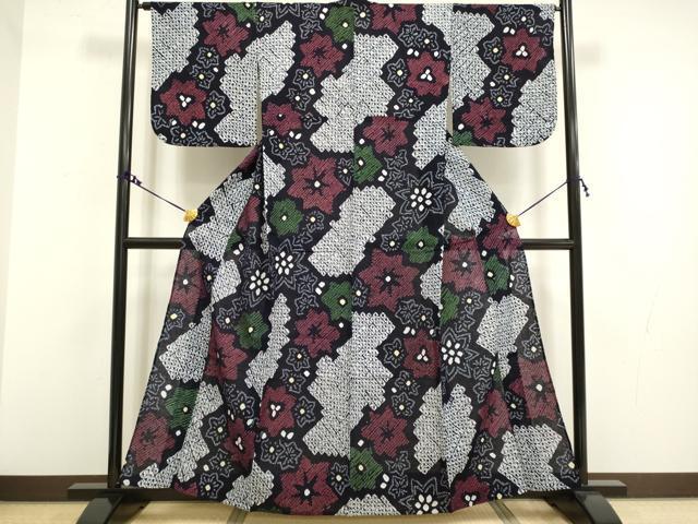 Heiwaya Kimono∴Superb Summer Yukata, Arimatsu Narumi Shibori, Floral Pattern, Cotton, Exquisite Item, DZAA20273kh5