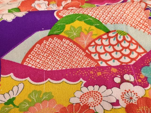 Heiwa-ya Kimono, Antique, Taisho Romantic, Girl's, Jusan Mairi (13th Birthday), Children's, Celebration Kimono, Cloud-Catching Shell Bucket Design, Excellent Item, AABB5699ja