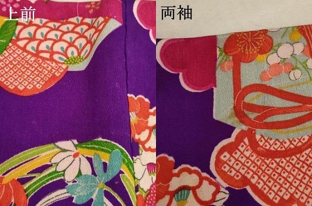 着物【正絹】の状態は接写画像のように上前・両袖に汚れがございますが
