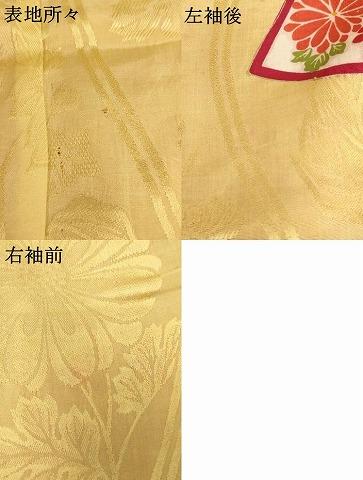 着物【正絹】の状態は接写画像のように表地所々にほつれ、左袖後・右袖前に薄い汚れがございます。