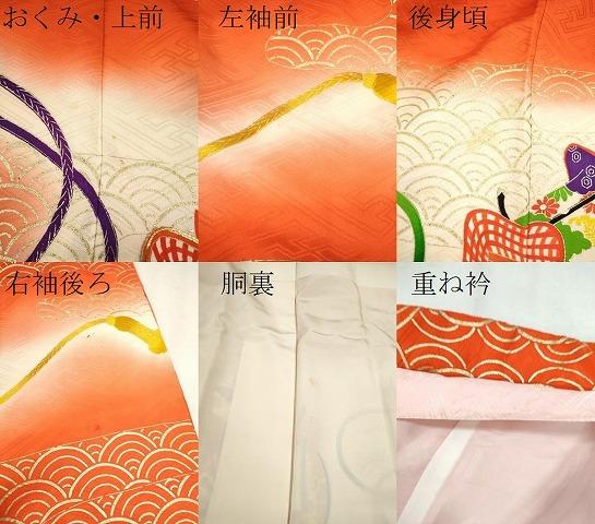 着物【正絹】の状態は接写画像のようにおくみ・上前・左袖前・後身頃・右袖後ろ・胴裏・重ね衿に薄い汚れがございます。