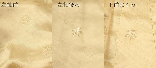 着物【正絹・未使用】の状態は接写画像のように左袖前に薄い汚れ、左袖後ろ・下前おくみの金彩に剥がれがございますが