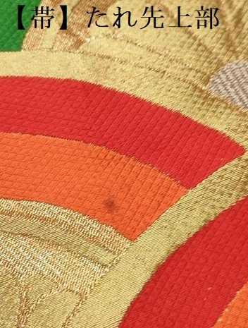 袋帯【正絹・芯なし】の状態は接写画像のようにたれ先上部に薄い汚れがございますが