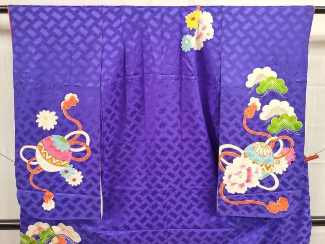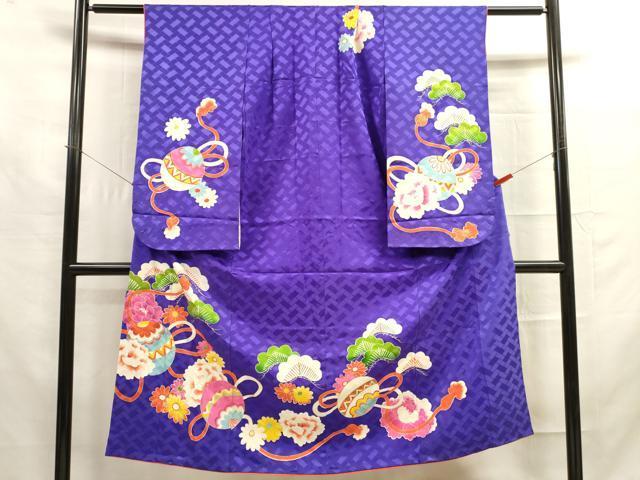 Heiwaya Kimono for Girls, Jusan Mairi (13th Birthday), Children's, Ball and Pine Design, Gold-Lattice, Excellent Item, DAAR1476jm