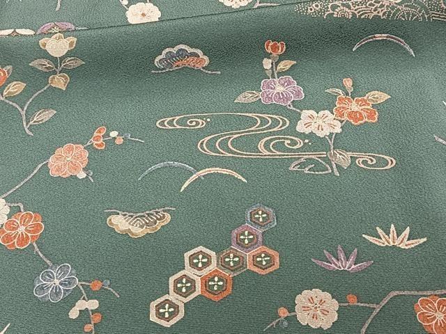 Heiwaya Kimono ■ High-quality small pattern kimono with auspicious floral motifs and gold accents. Pure silk. Excellent quality. Unused. CAAY3745xi