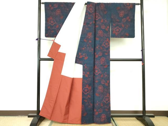Heiwaya Kimono ■ High-quality Tsumugi silk kimono with floral pattern, pure silk, exquisite item, DABE1955op