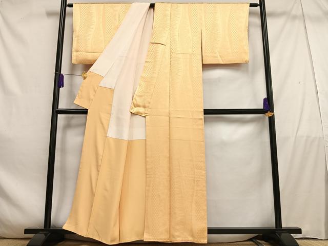 Heiwa-ya Kimono ■ High-quality plain kimono with a pine needle arabesque pattern, honey-colored, pure silk, excellent quality AABD9148oa