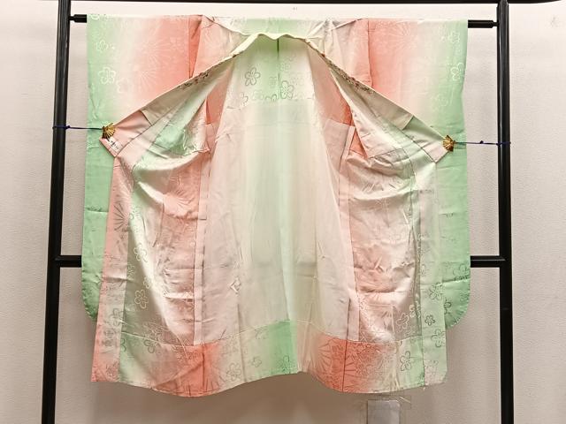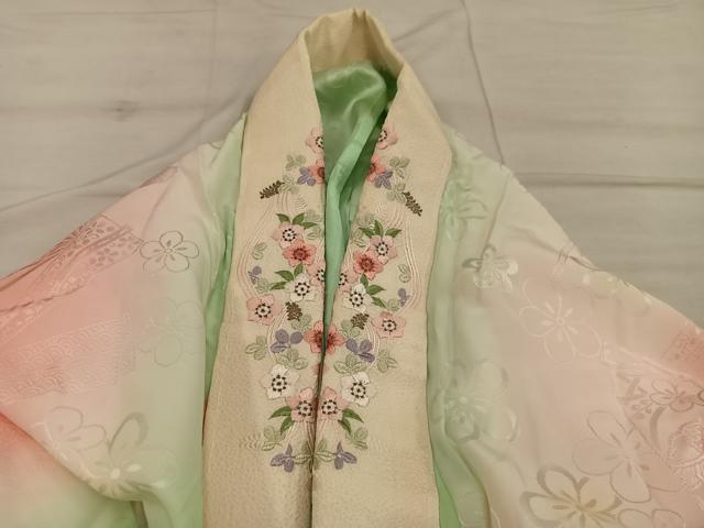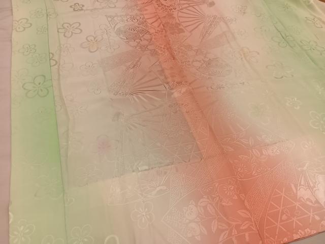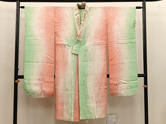 Heiwaya Kimono ■ Long undergarment for furisode (long-sleeved kimono), double-layered construction, fan and butterfly/flower pattern, gradation dyeing, custom-made by Yamato, embroidered collar, pure silk, exquisite item, BAAX4499mz