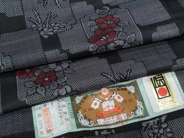 Heiwa-ya Kimono ■ Authentic Oshima Tsumugi Silk with Floral Pattern, Certificate of Authenticity, Excellent Quality, Unused, CAAX3028th