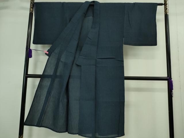 Heiwaya Kimono ■ Premium Summer Kimono for Men, Linen, Solid Color, Deep Blue, Excellent Condition, DZAA9385kh5