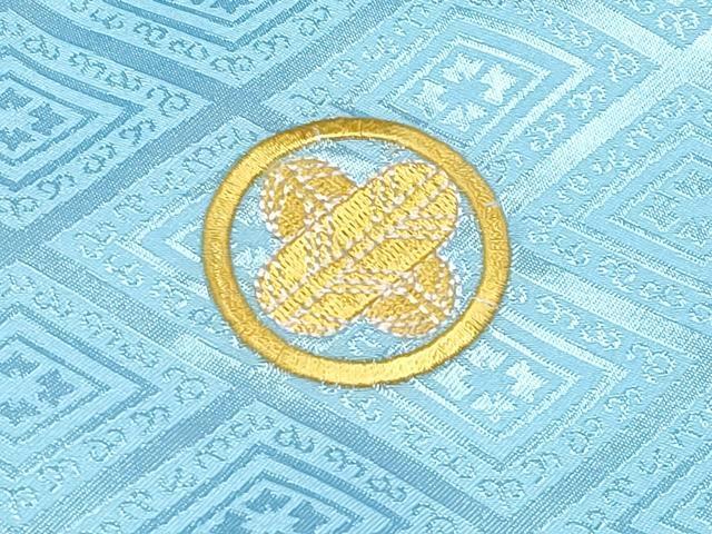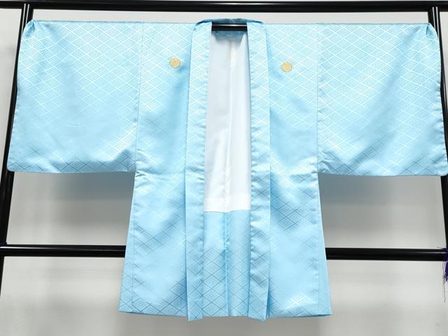 Heiwaya Kimono ■ Premium Men's Iromuji Kimono with Family Crest and Lantern Hakama Set, King Size, Stage Costume, Hanabishi Pattern, Light Blue, Washable, Excellent Condition, CYAA3474s5