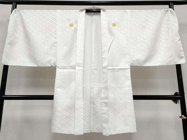 Heiwaya Kimono ■ Premium Men's Iromuji Kimono with Family Crest and Lantern Hakama Set, King Size, Stage Costume, Hanabishi Pattern, White, Washable, Excellent Condition, CYAA3476s5