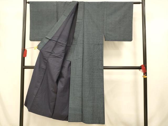 Heiwaya Kimono ■ Men's Authentic Oshima Tsumugi Ensemble, Plaid, Pure Silk, Excellent Quality, AABA3597fw