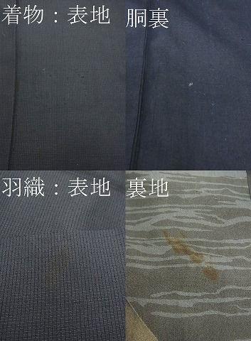 羽織の状態は接写画像のように表地所々・胴裏に薄い汚れがございます。