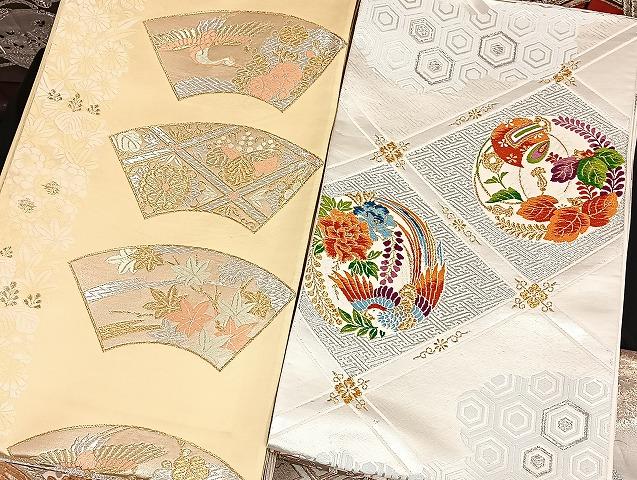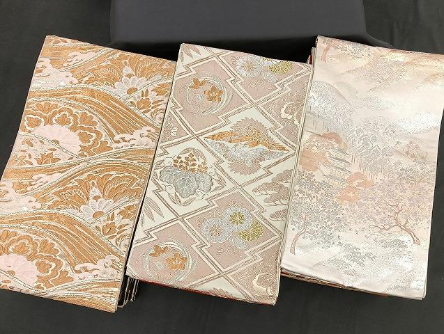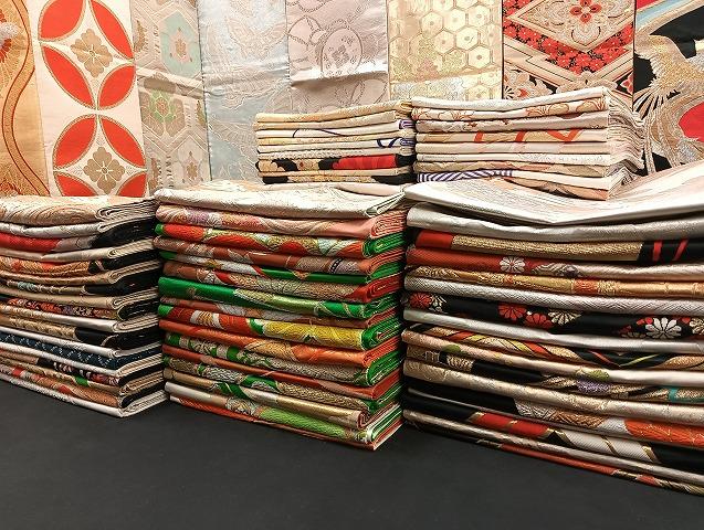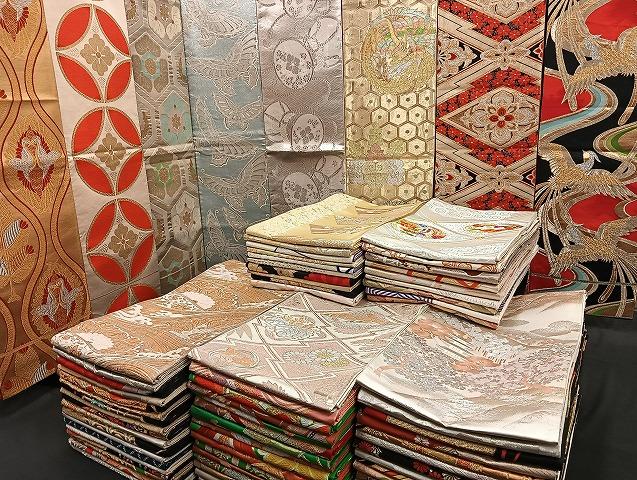 Heiwaya Kimono ■ Nishijin Fukuro Obi (Sashes) - 100 pieces in total. Featuring phoenixes, facing cranes, long-tailed birds, facing birds, butterflies, landscapes, cloisonné, Shosoin treasures, musical instruments, Saga Nishiki, gold and silver thread. All silk, some unused. mmm972