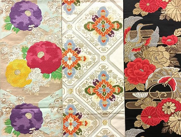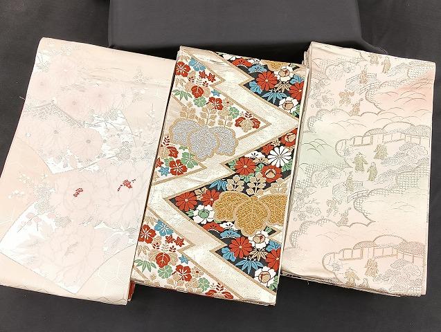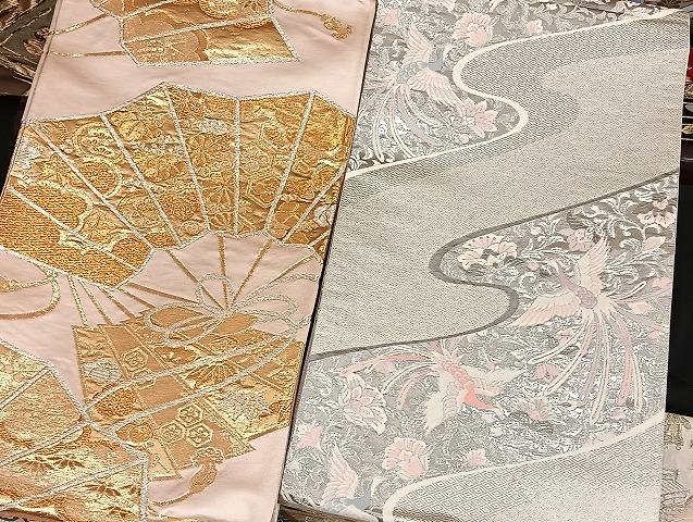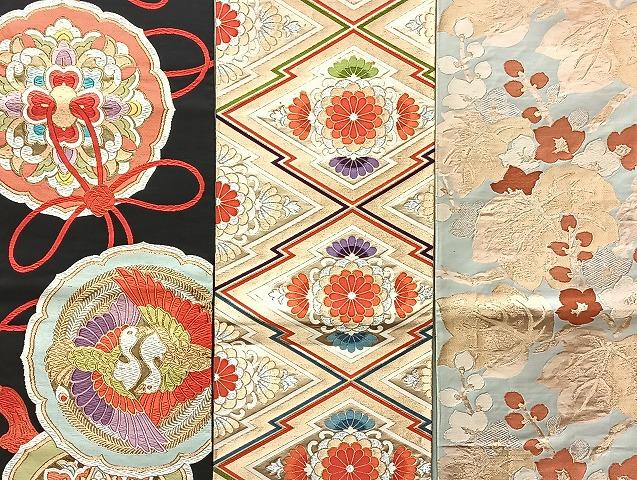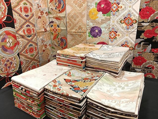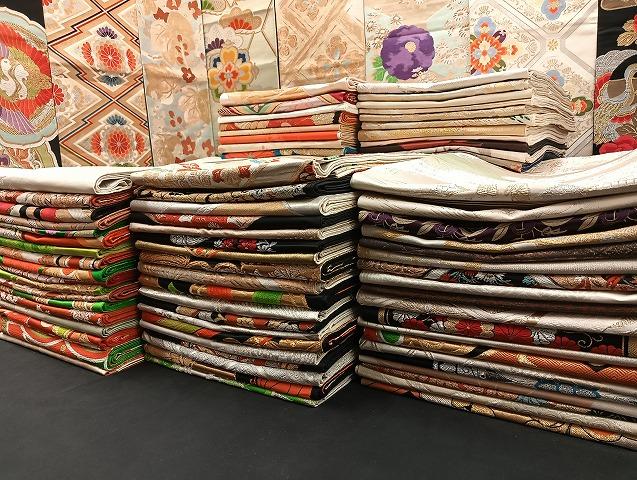 Heiwaya Kimono ■ Nishijin Fukuro Obi (Sashes) - 100 pieces in total. Featuring phoenixes, cranes, long-tailed birds, facing birds, people, butterflies, landscapes, chintz, pine, bamboo, and plum motifs, cloisonné, Shosoin treasures, gold and silver thread. All silk, some unused. mmm965
