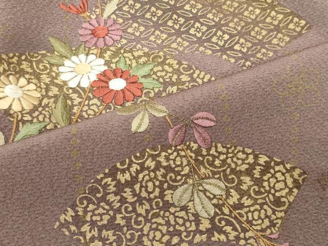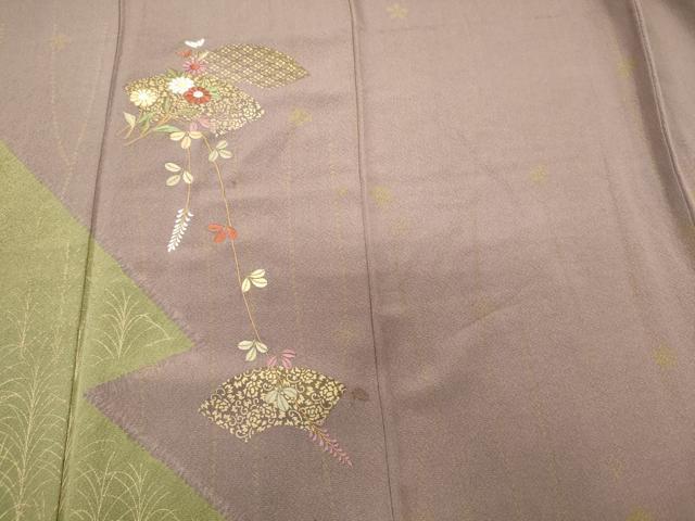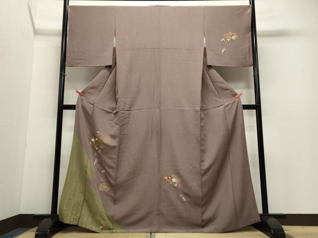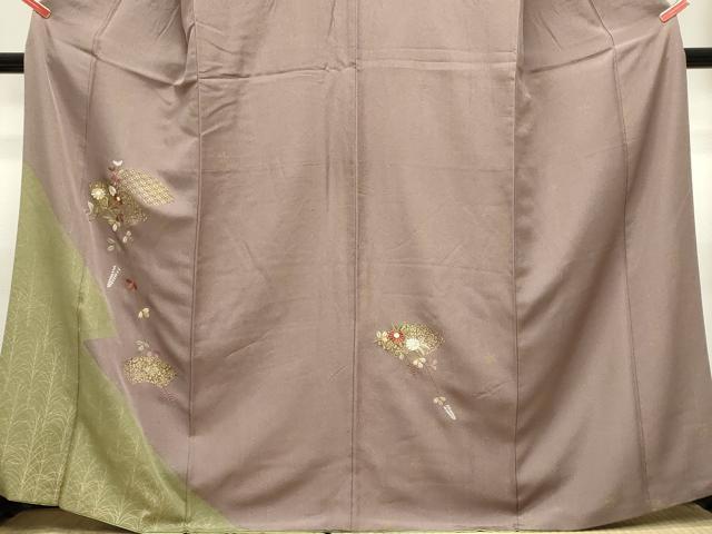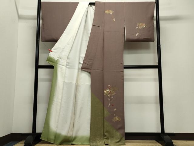 Heiwa-ya Kimono ■ Visiting Kimono, Embroidered with Layered Branch and Flower Pattern on Paper, Gold-Tinted, Pure Silk, Excellent Item, CABA0253oy
