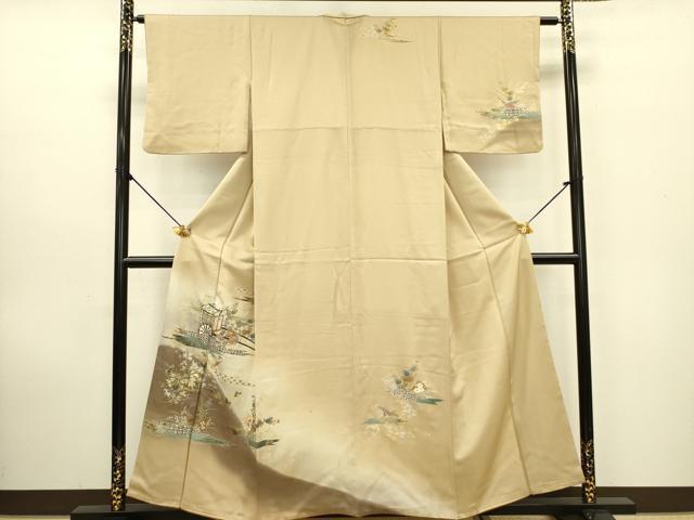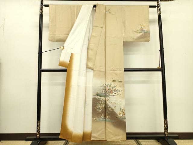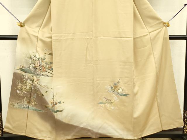 Heiwa-ya Kimono ■ Visiting Kimono, Imperial Carriage and Flower Pattern, Gradient Dye, Gold and Silver Accents, Pure Silk, Excellent Item, DAAZ2526op