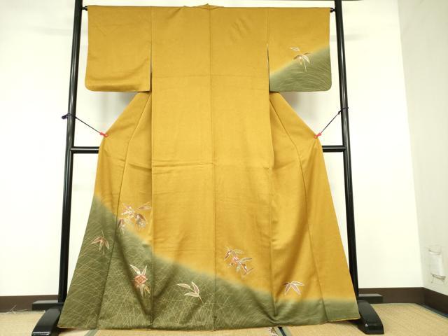 Heiwaya Kimono ■ Formal Kimono, Bamboo Leaf and Vessel Flower Pattern, Gradation Dye, Gold and Silver Accents, Pure Silk, Exquisite Item, DABE1997op