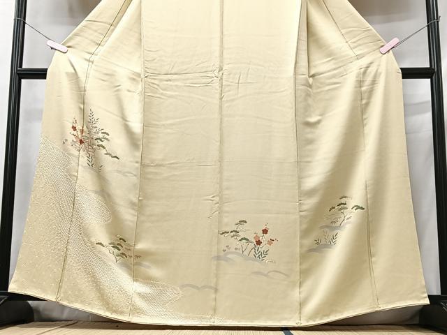 Heiwaya Kimono ■ Visiting Kimono, Shibori Pattern, Auspicious Flower Design, Gold Accents, Pure Silk, Excellent Quality, CABB2842xe