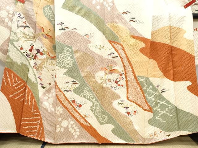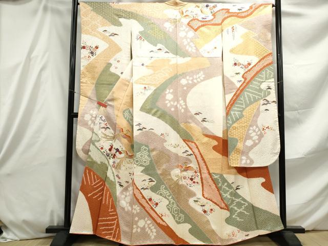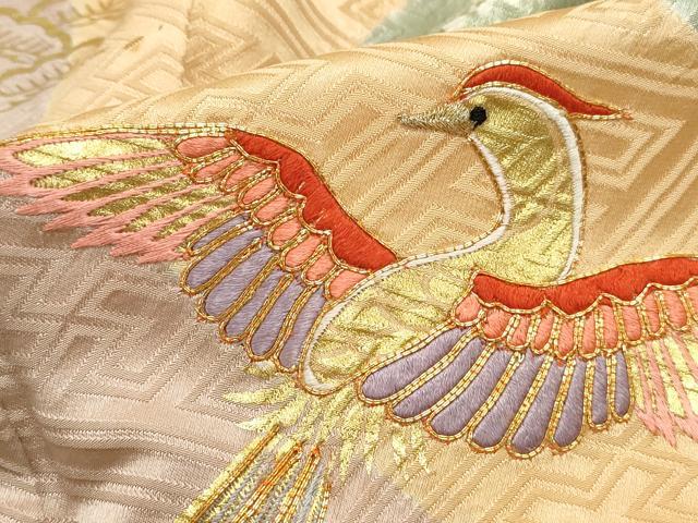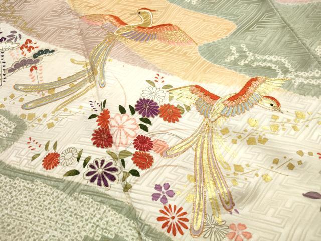 Heiwaya Kimono ■ Luxurious Furisode (long-sleeved kimono) - Komaburi (embroidered silk crepe) - Shibori (tie-dyeing) - Michinaga flower and bird pattern - Gold leaf - Pure silk - Exquisite item - DABE8817qa